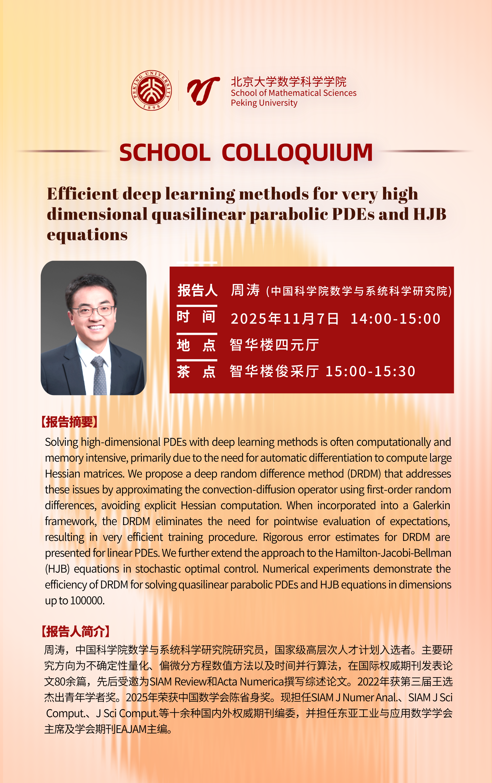 School Colloquium——Efficient deep learning methods for very high dimensional quasilinear parabolic PDEs and HJB equations