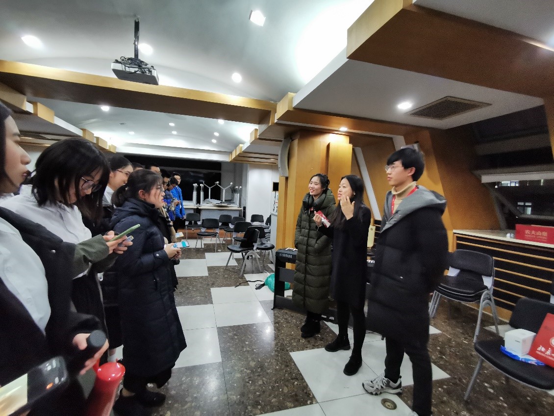 12月7日早晨9点,所有同学在理科一号楼1560集合进行最后的排练,学工办组织大家进行服装更换、化妆等准备工作,党委副书记董子静到场做动员讲话。12月7日晚,所有同学登台表演并获得了甲组三等奖。