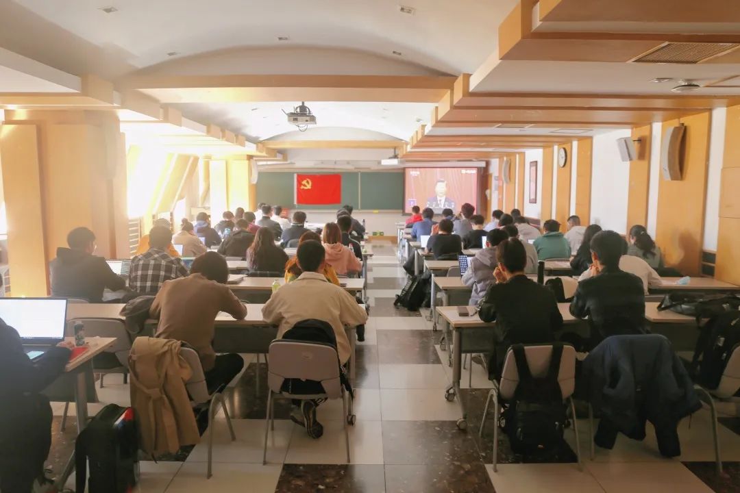 1560教室,他们中有部分刚转正的同学正在参加党校政治素养提升班的培训,开幕会前,他们热烈讨论并期待着大会召开,会议开始后,同学们聚精会神地聆听总书记的报告。