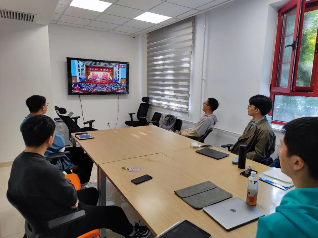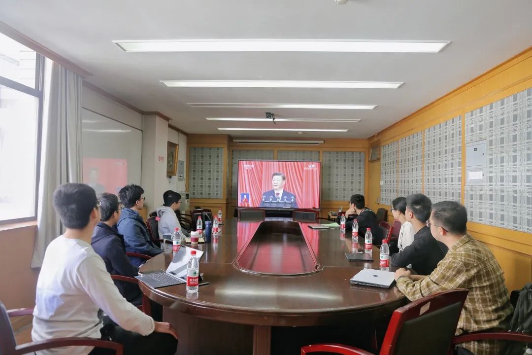 院长陈大岳、党委书记胡俊、党政领导班子成员、党委委员、教师、博士后、学生党员、入党积极分子等集体观看开幕会。