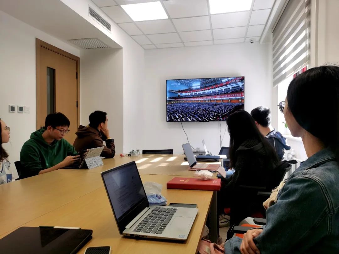 的会议室、教室内,都是观看开幕会的师生。全部学生党支部和团校也都组织了集体收看和学习讨论。