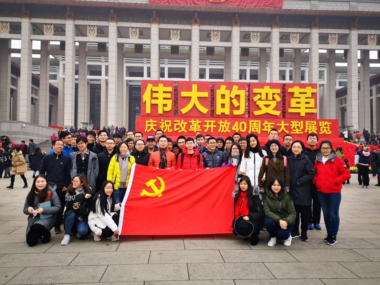 先后四批次组织学生党员、入党积极分子、党课学员、班团骨干、广大学生前往国家博物馆观看“伟大的变革——庆祝改革开放40周年大型展览”。以党员和学生骨干为辐射节点,各党支部、班级、团支部开展“伟大的变革——庆祝改革开放40周年大型展览网上展馆”学习;本科生党支部持续关注人民日报“今天,致敬改革开放,致敬我们共同奋斗的40年”等系列新媒体报道;13个学生党支部和36个团支部在党团日活动中,广泛深入学习改革开放的历史经验,深化对中国特色社会主义道路的理解与认同。